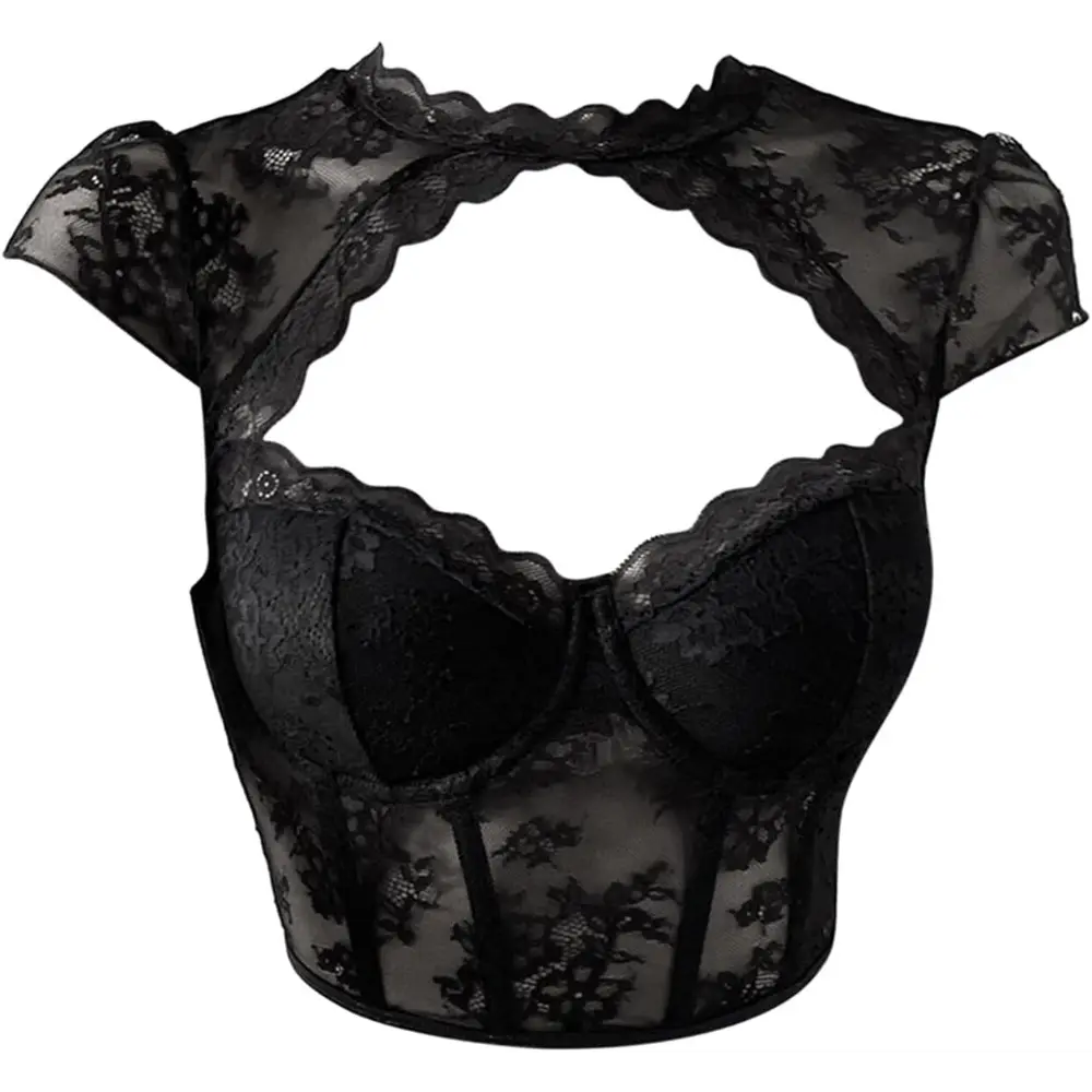 * Women Lace Corset Bodysuit | See-Through Mesh Night Club Top